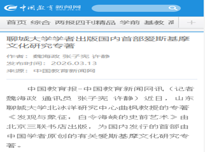 【深学笃行全会精神 锚定高质量发展】聊城大学学者出版国内首部爱斯基摩文化研究专著2026/03/16