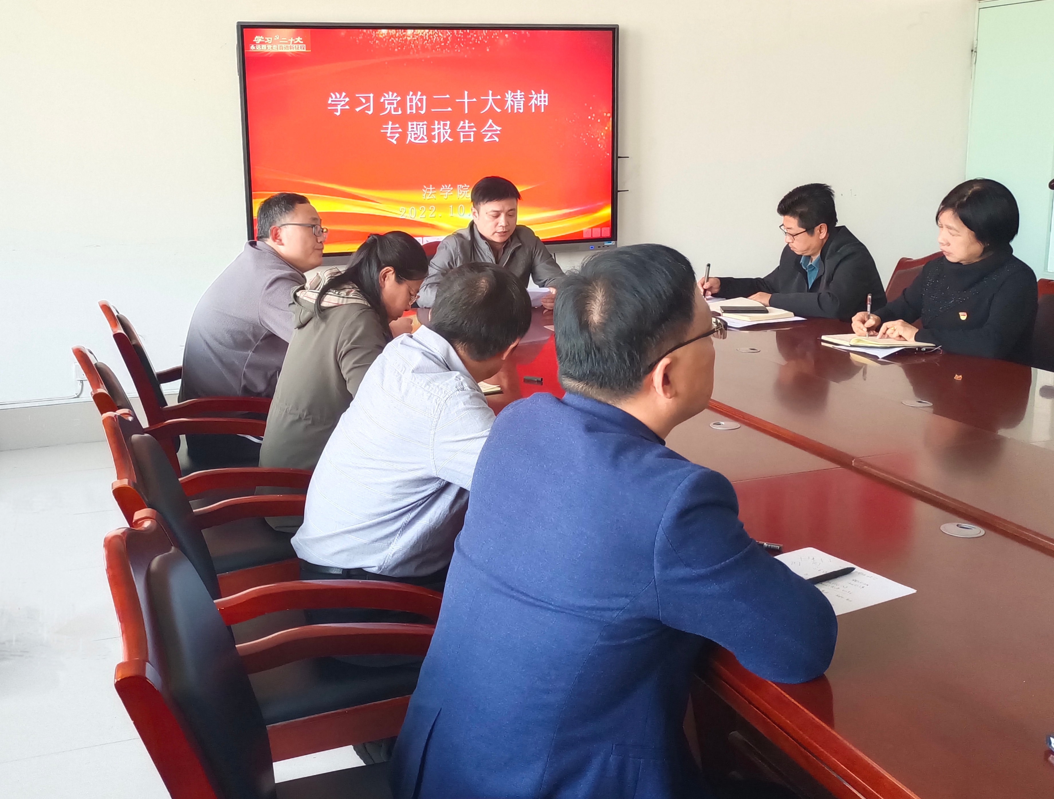 10月27日,法学院召开学习贯彻党的二十大精神专题报告会,学院党委书记季昌伟主持会议,党委领导班子成员及全体教职工参加此次会议。