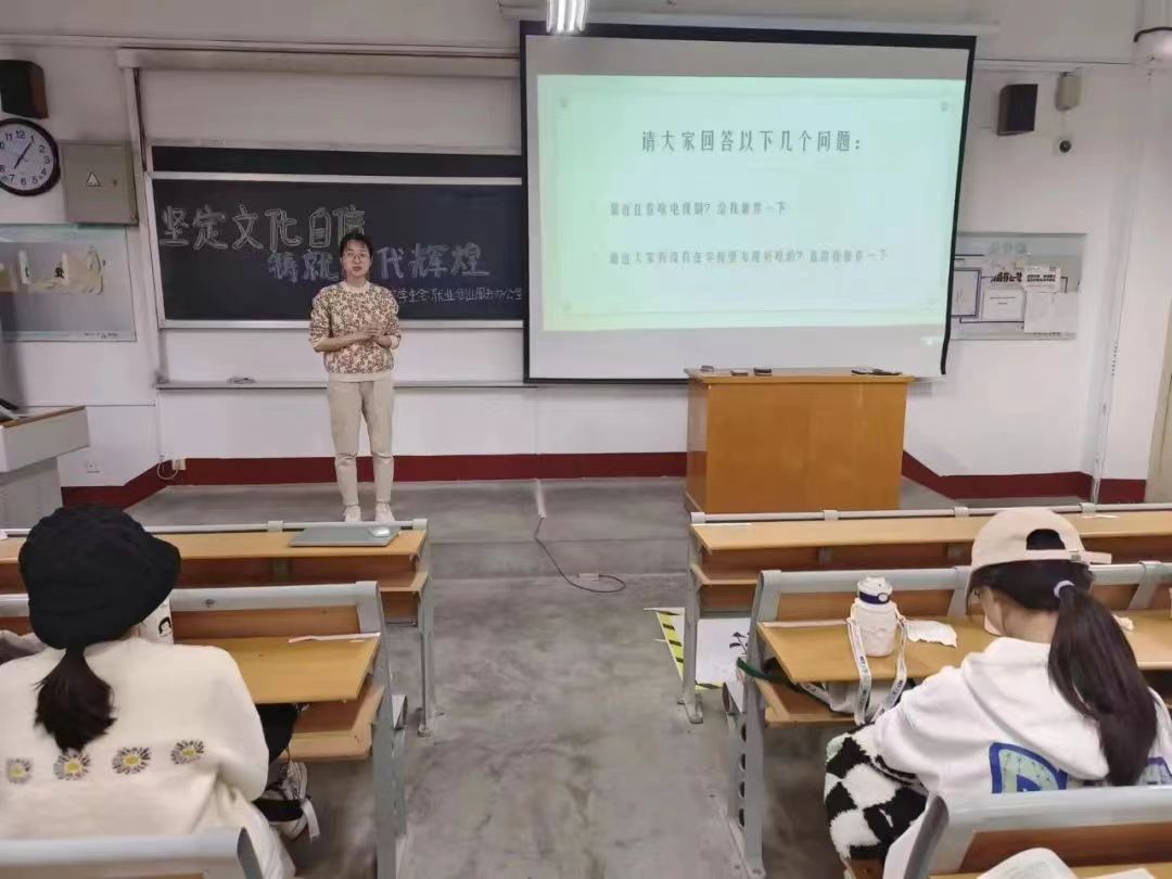刘璐在宣讲中强调文化自信是一个国家、一个民族、一个政党对自身文化价值的充分肯定,对自身文化生命力的坚定信念。刘璐用幽默风趣的语言、有趣的事迹,结合视频生动讲述中国文化的博大精深,她提到中国人做事情的思维方式就是中国文化,以及文化的输出本身就是一种文化自信,并对中国文化影响最深的就是儒家思想。最后,活动负责人播放党的二十大报告中关于文化自信的视频,宣传片中深刻地展现了中华文化的璀璨瑰丽,帮助学生了解中华优秀的传统文化,充分汲取中华文化中的营养,学生纷纷表示以后一定会坚定文化自信,用中国人的方式将中华民族精神发扬光大。