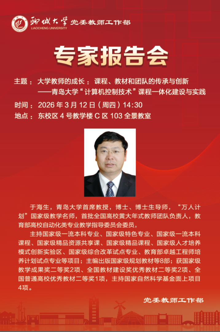 专家报告会——大学教师的成长:课程、教材和团队的传承与创新——青岛大学“计算机控制技术”课程一体化建设与实践