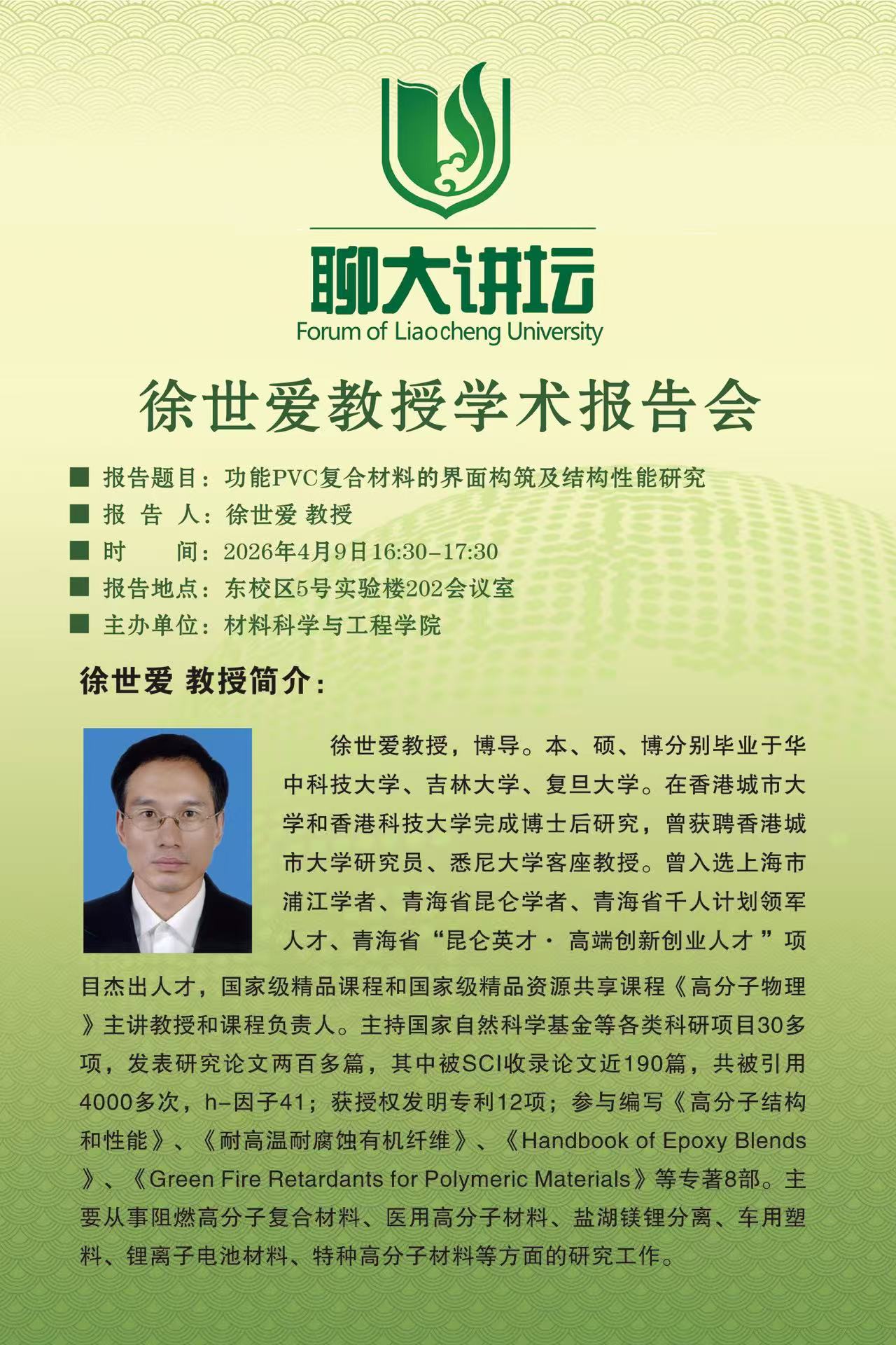 聊大讲坛——徐世爱教授学术报告会