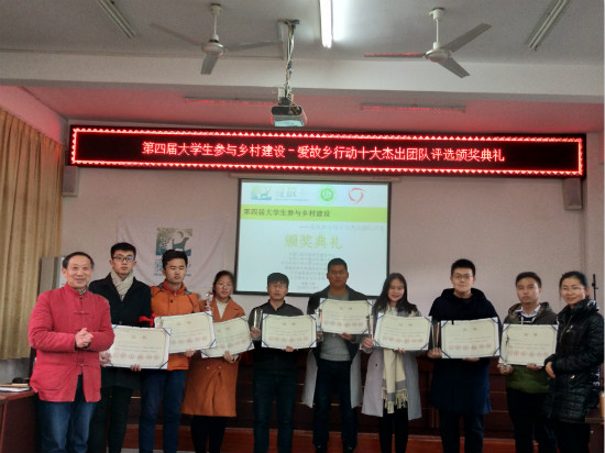 1月29日,在中国人民大学乡村建设中心等多家机构联合发起的“第四届全国大学生参与乡村建设——爱故乡行动十大杰出团队评选”活动中,新农科技社从全国三百多个高校支农社团中脱颖而出,荣获“十大杰出团队”荣誉称号。