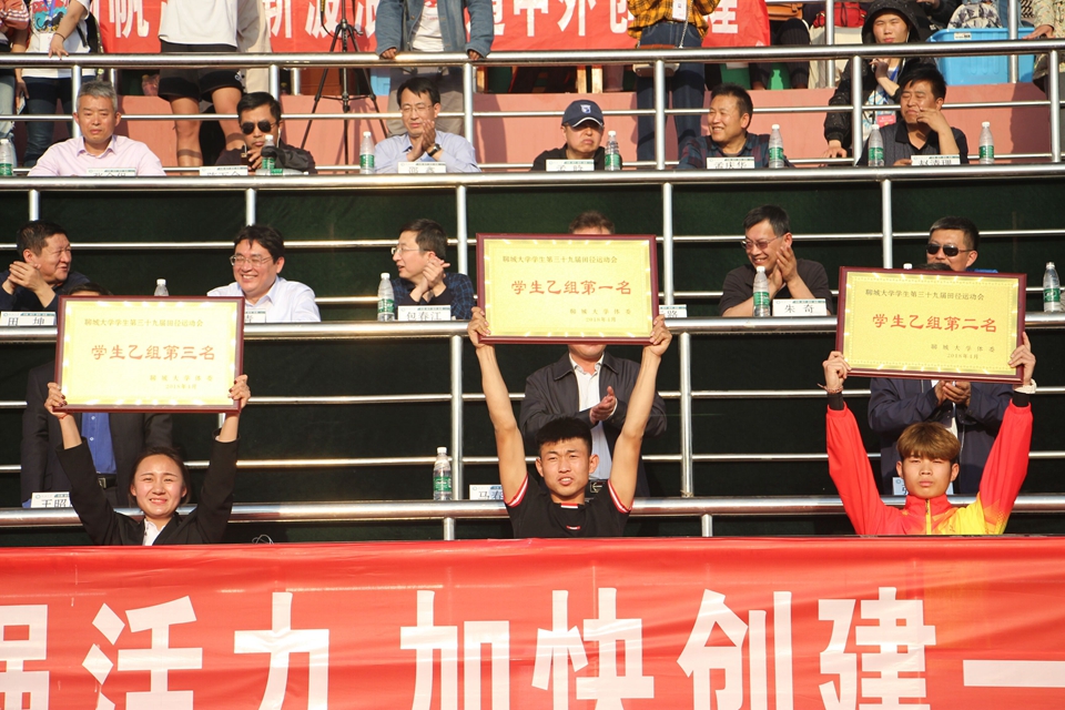 党委常委、副校长王昭风向取得优异成绩的单位和运动员表示祝贺,对全体裁判员和工作人员表示感谢。他说,“振兴体育事业,实现强国梦想”,这是习近平总书记对中国体育事业发展提出的新要求,也是对我们每个中华儿女提出的殷切希望。希望大家把在本届运动会上表现出来的奋力拼搏、勇争第一的进取精神,团结互助、精诚合作的团队精神,坚韧不拔、永不言败的意志品质带到工作、学习和生活中,带到实现“中国梦”“聊大梦”的征程中,积极进取,顽强拼搏,以强健的体魄、坚强的意志,朝着我们的梦想大步前进。