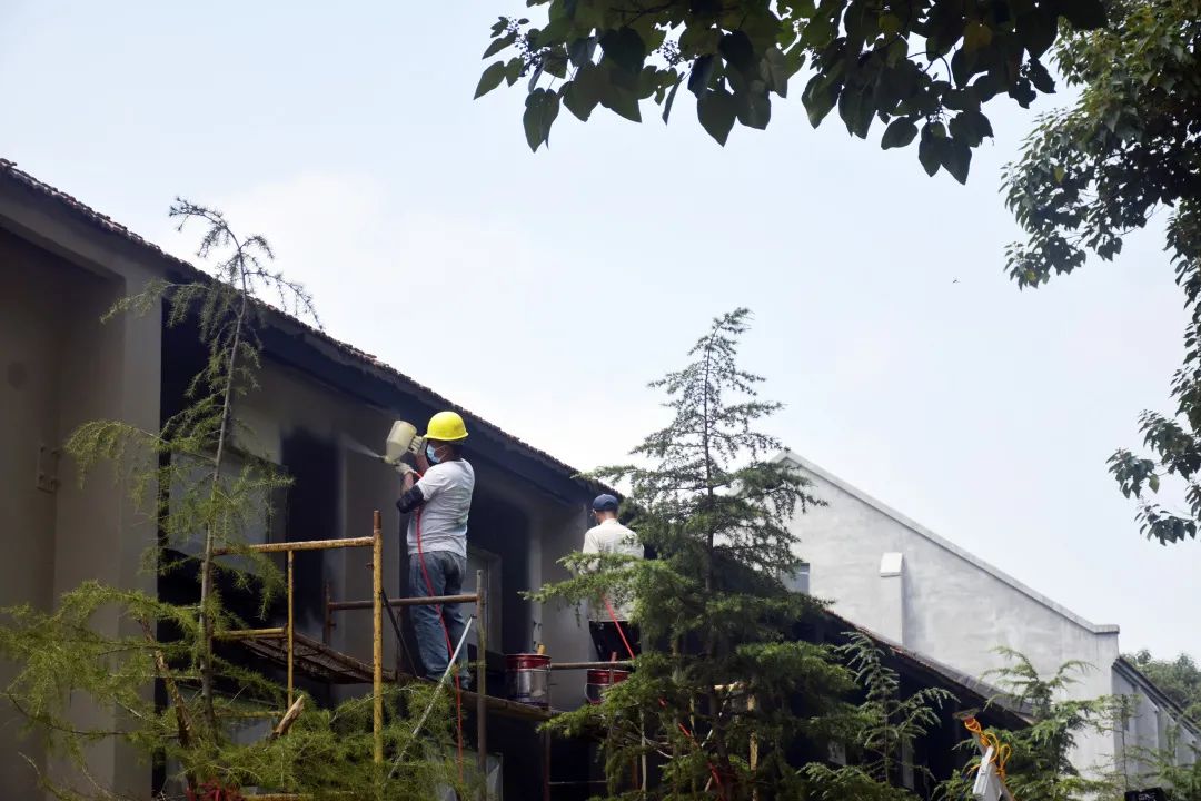 一些建筑的墙面也在修葺