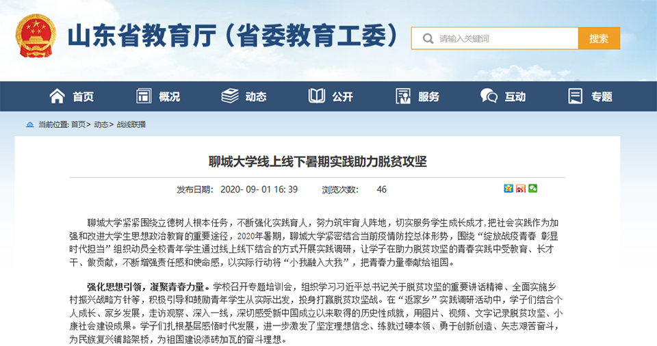 【山东省教育厅】聊城大学线上线下暑期实践助力脱贫攻坚