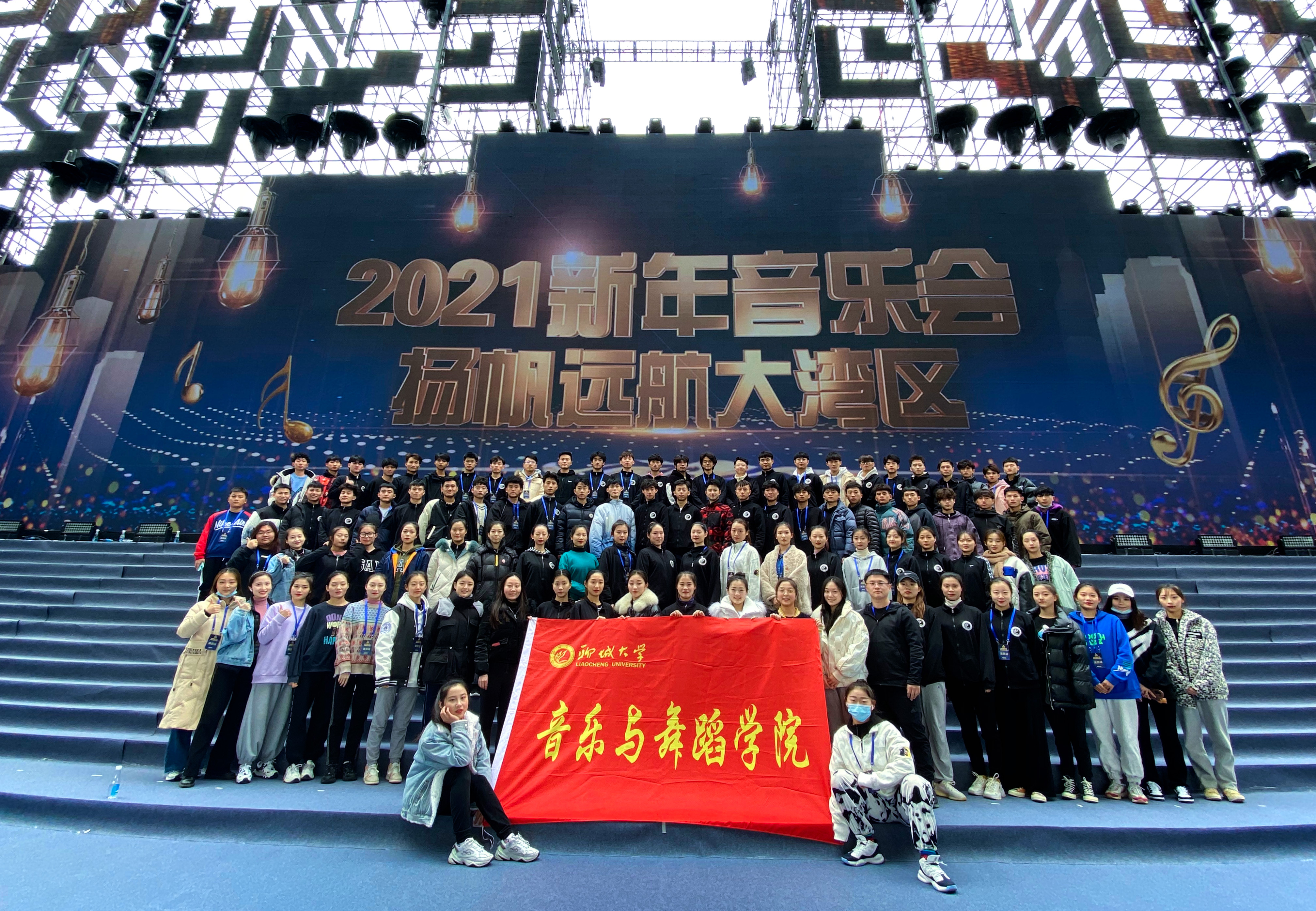12月23日,音乐与舞蹈学院98名师生完成中央广播电视总台《2021新年音乐会——扬帆远航大湾区》录制任务,返回学校。2020年12月2日央视向我校发出邀请函,音乐与舞蹈学院辅导员陈蓝天,舞蹈教师桑文倩、朱歌、魏炜带领90名舞蹈系学生以及4名学生助理受邀参与录制。