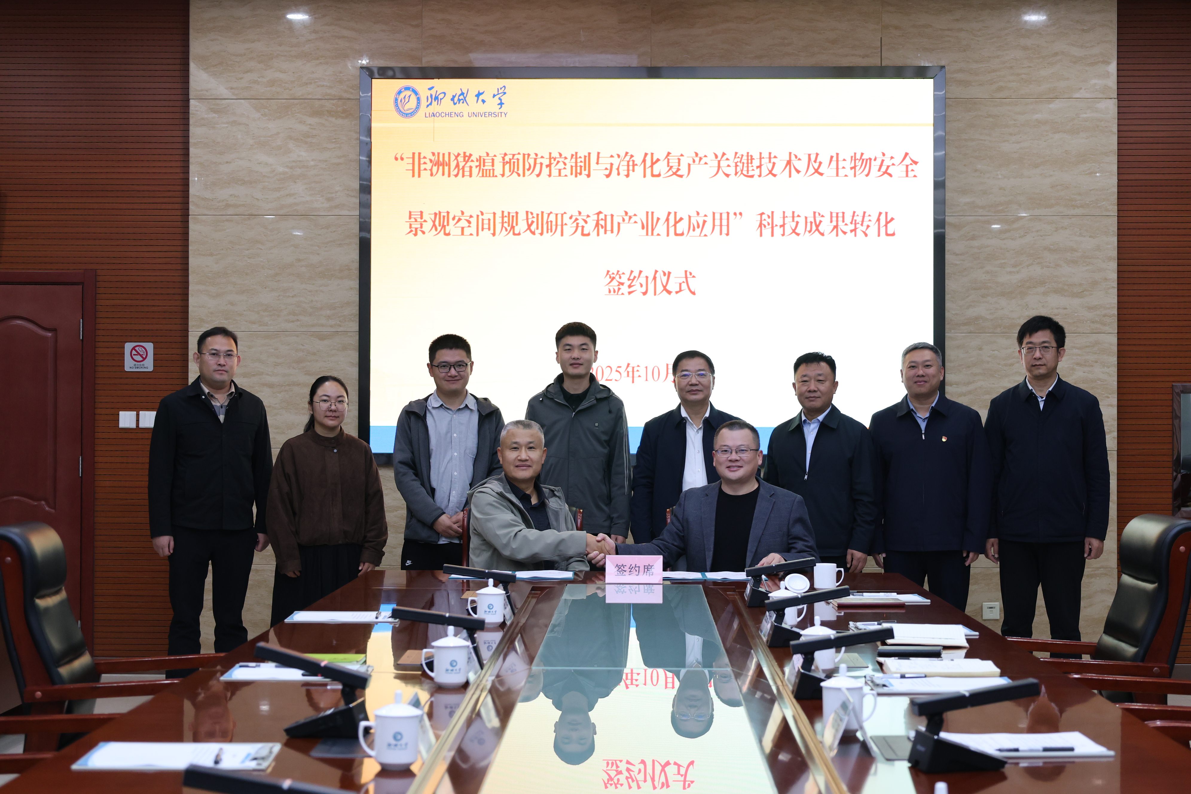 10月23日上午,一项合同金额高达1000万元的科技成果,在我校办公楼A108会议室成功签约转让,聊城大学与青岛禾邦农业集团有限公司在这里举行了“非洲猪瘟预防控制与净化复产关键技术及生物安全景观空间规划研究和产业化应用”科技成果转化签约仪式。本次科技成果转化合同金额刷新了学校单项技术转让金额的历史纪录。