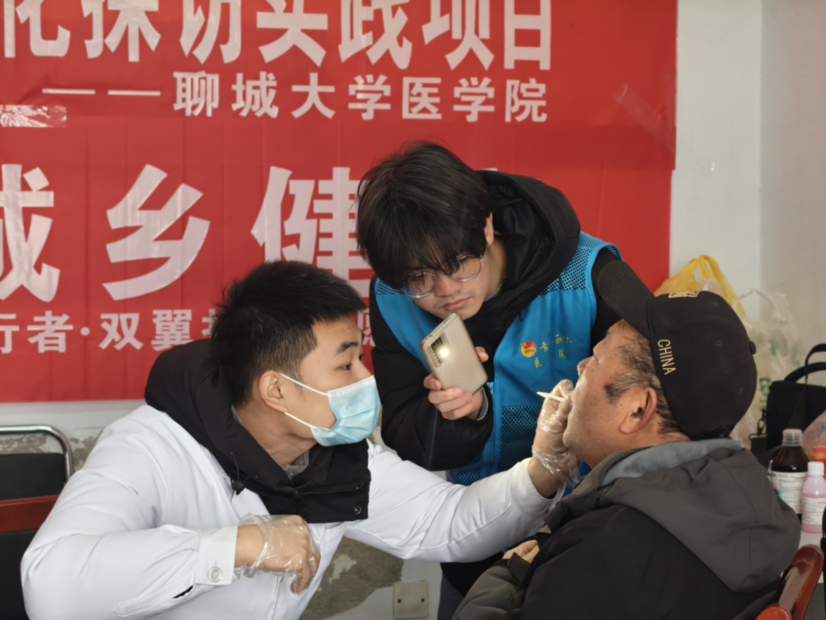 1月25日,医学院“医行者·双翼护航”志愿服务队联合聊城市人民医院专家团队,赴东阿县姜楼镇马安村开展义诊与急救科普社会实践活动。团队针对农村地区医疗资源相对匮乏、村民口腔保健意识薄弱及急救知识普及率低的现状,利用寒假契机搭建“临时义诊台”,分组开展精准服务。宣传组深入街坊普及牙齿保健知识,耐心解答村民困扰并引导问诊;义诊组为村民提供免费血压测量,协助医生进行基础口腔检查,针对牙列缺损村民完成印模制取、模型灌注等义齿定制前期工作,并建立档案以便后期跟踪服务;急救科普组则同步向村民传授实用急救技能。此次活动不仅将优质医疗资源下沉至基层,切实解决了村民“看牙难、看牙贵”的实际问题,提升了村民的健康素养与自我保健能力,也让医学生在实践中巩固了临床技能,实现了服务社会与专业成长的双向奔赴。
