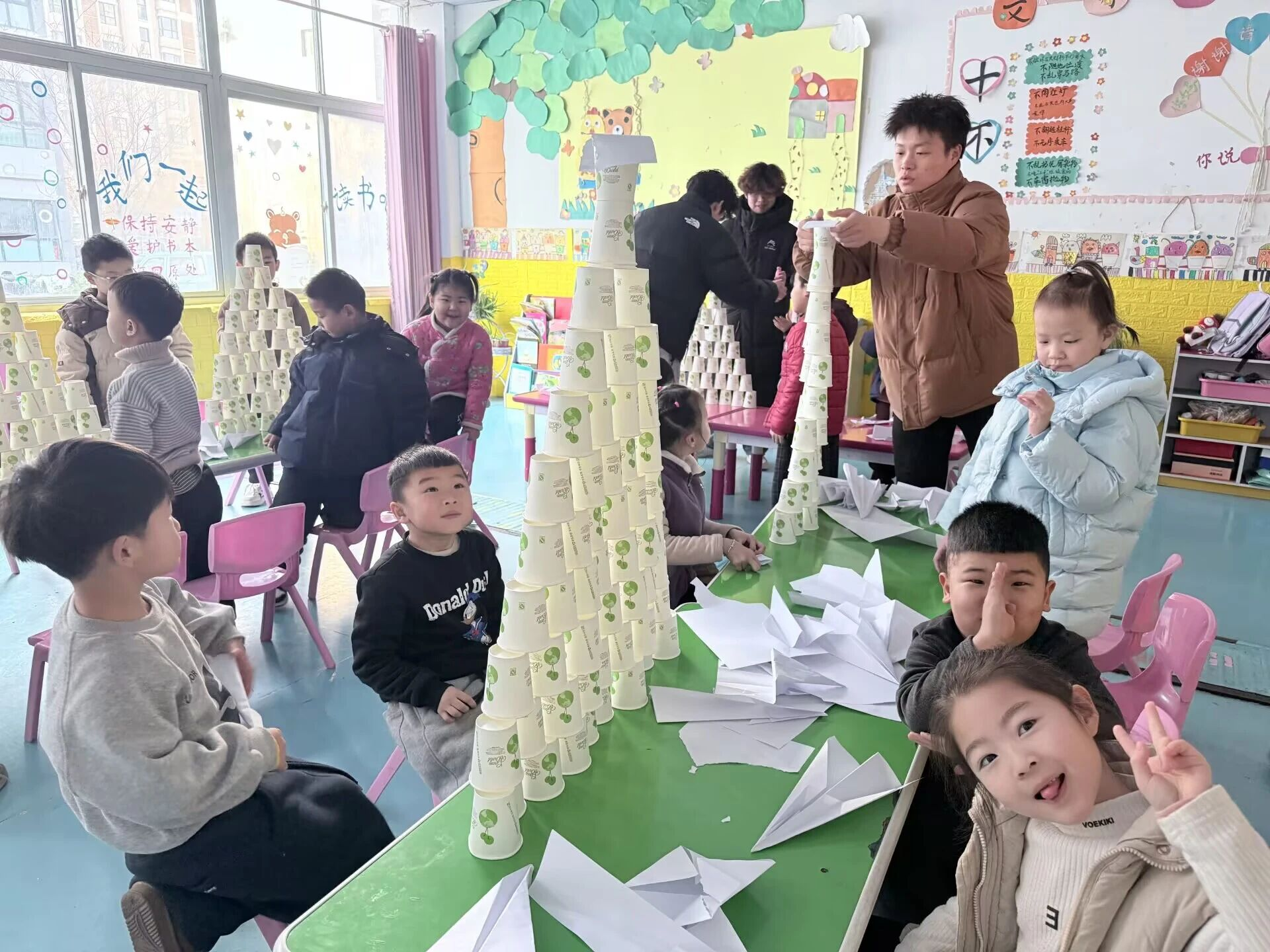 1月29日,物理科学与信息工程学院“科创赋能邻里”实践队走进古楼街道馨苑社区新世纪幼儿园开展主题教育实践活动。团队针对传统科普教育中理论晦涩难懂、儿童参与度不高的痛点,利用学科专业优势,设计了“科创纸飞机”与“纸杯摩天楼”两大趣味任务。在“科创纸飞机”环节,队员们将对称结构与空气动力学原理融入折纸教学,引导孩子们在试飞中不断调整架构,亲身体验“尝试—改进—再尝试”的科学探究逻辑;在“纸杯摩天楼”搭建环节,队员们通过直观演示讲解“宽底座提升稳定性”的力学原理,并组织孩子们协作搭建,让他们在实践中感悟团队合作的力量。此次活动通过生活化场景与互动体验让抽象的物理知识变得生动有趣,不仅有效激发了社区儿童的科创热情与探索精神,也锤炼了大学生将专业知识转化为社会服务能力的实践本领,实现了高校资源与社区需求的深度对接。