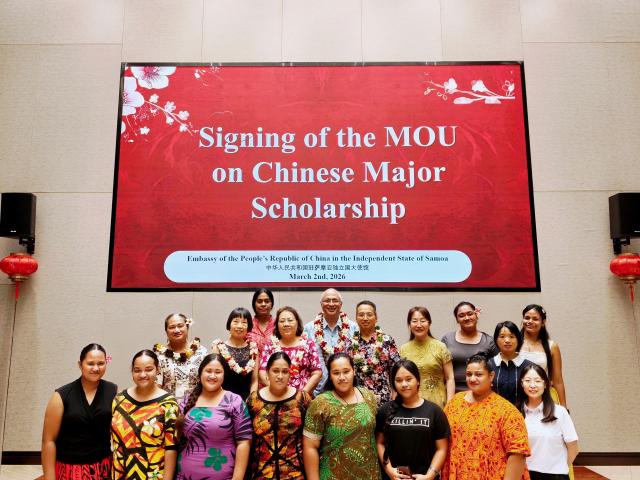 3月2日,萨摩亚国立大学中文专业启动仪式暨中国大使奖学金颁发仪式在中国驻萨摩亚大使馆举行。中国驻萨摩亚大使费明星、萨教育与文化部部长艾里克、萨国立大学校长阿莫萨、中文专业学生、中国大使奖学金获奖学生、萨中留学生会代表、萨大孔院中方教师等80余人出席。此次中文专业的正式启动,标志着中文教育首次以本科专业形式进入太平洋岛国高等教育体系。