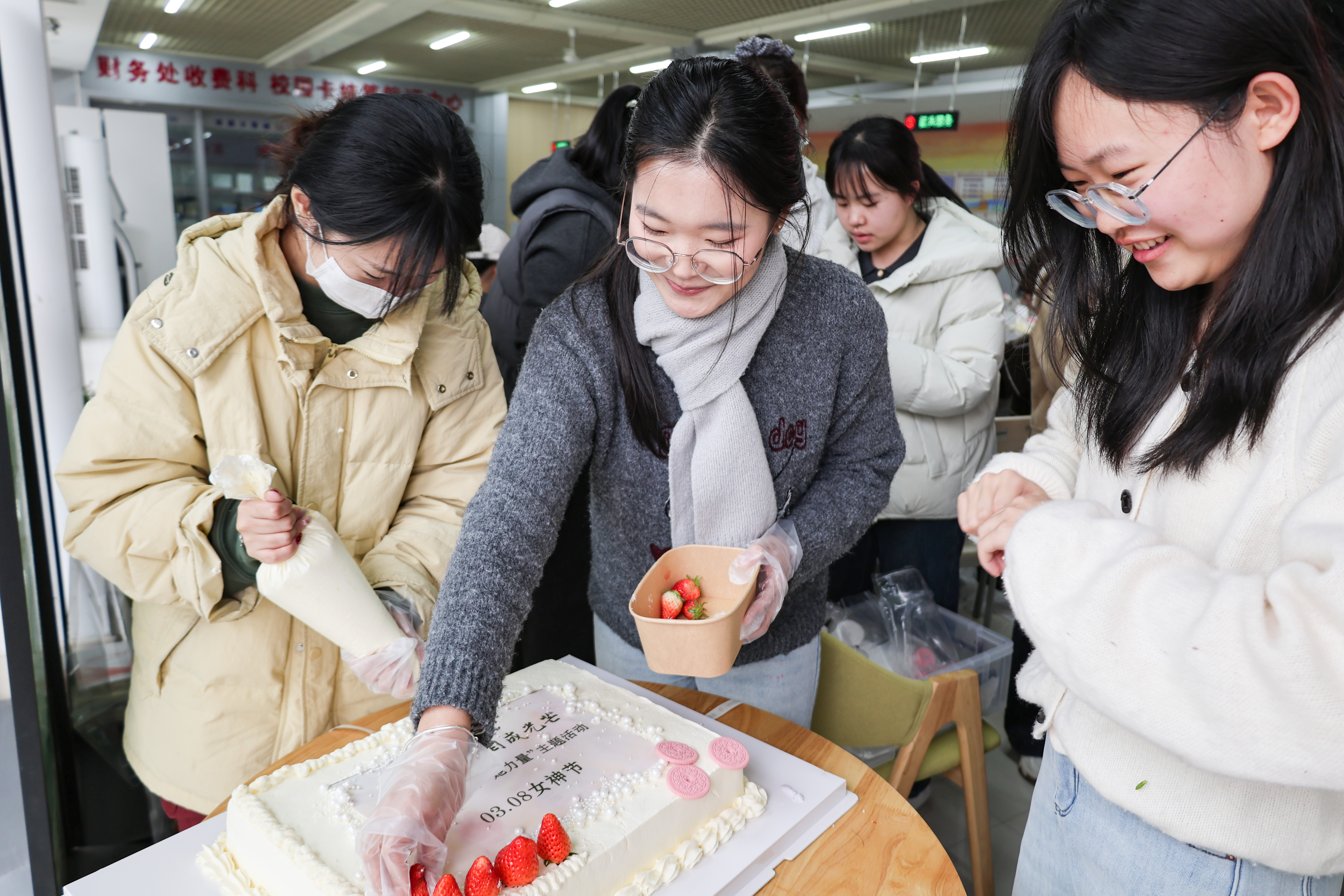 春和景明,芳华绽放。3月8日,在第116个“三八”国际劳动妇女节来临之际,由聊城大学学生资助管理中心主办,美术与设计学院、历史文化与旅游学院承办的“纸杯花艺蛋糕”手工制作活动在辰晖楼温馨开展。学校党群工会教师、学院资助辅导员与学生代表共50余人齐聚一堂,在蛋糕的绵软香甜与花艺的灵动雅致中,共赴一场兼具劳动实践、美育熏陶与精神成长的节日之约。