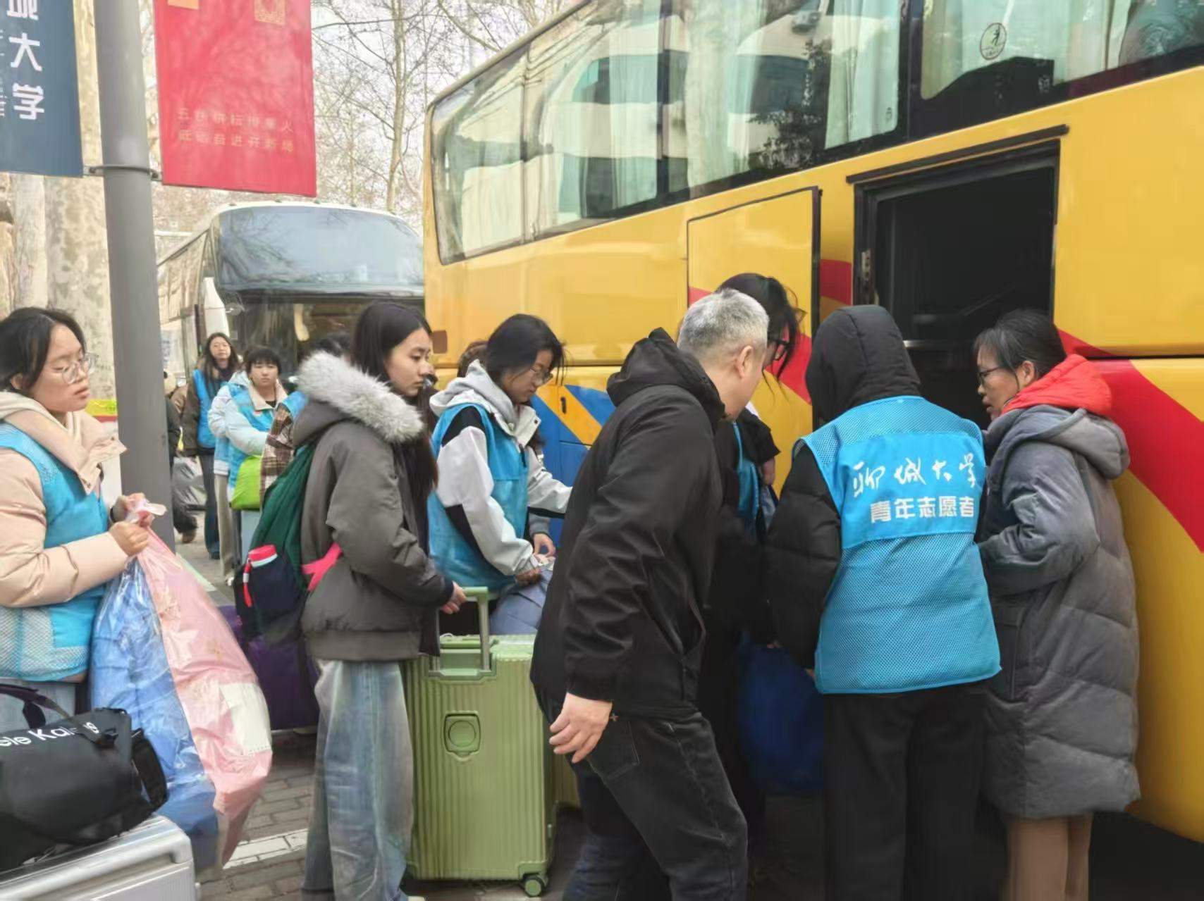 出发前,各相关学院负责人、教务处实习工作相关负责人以及辅导员老师早早来到集合点,认真组织学生集合、点名,并协助装运行李。各学院领导亲临现场为同学们送行,与即将出征的实习支教学子亲切交谈,叮嘱大家注意安全、珍惜实习机会,鼓励他们将所学理论知识转化为教学实践能力,展现聊大学子的良好风貌,为聊城基础教育事业贡献青春力量。