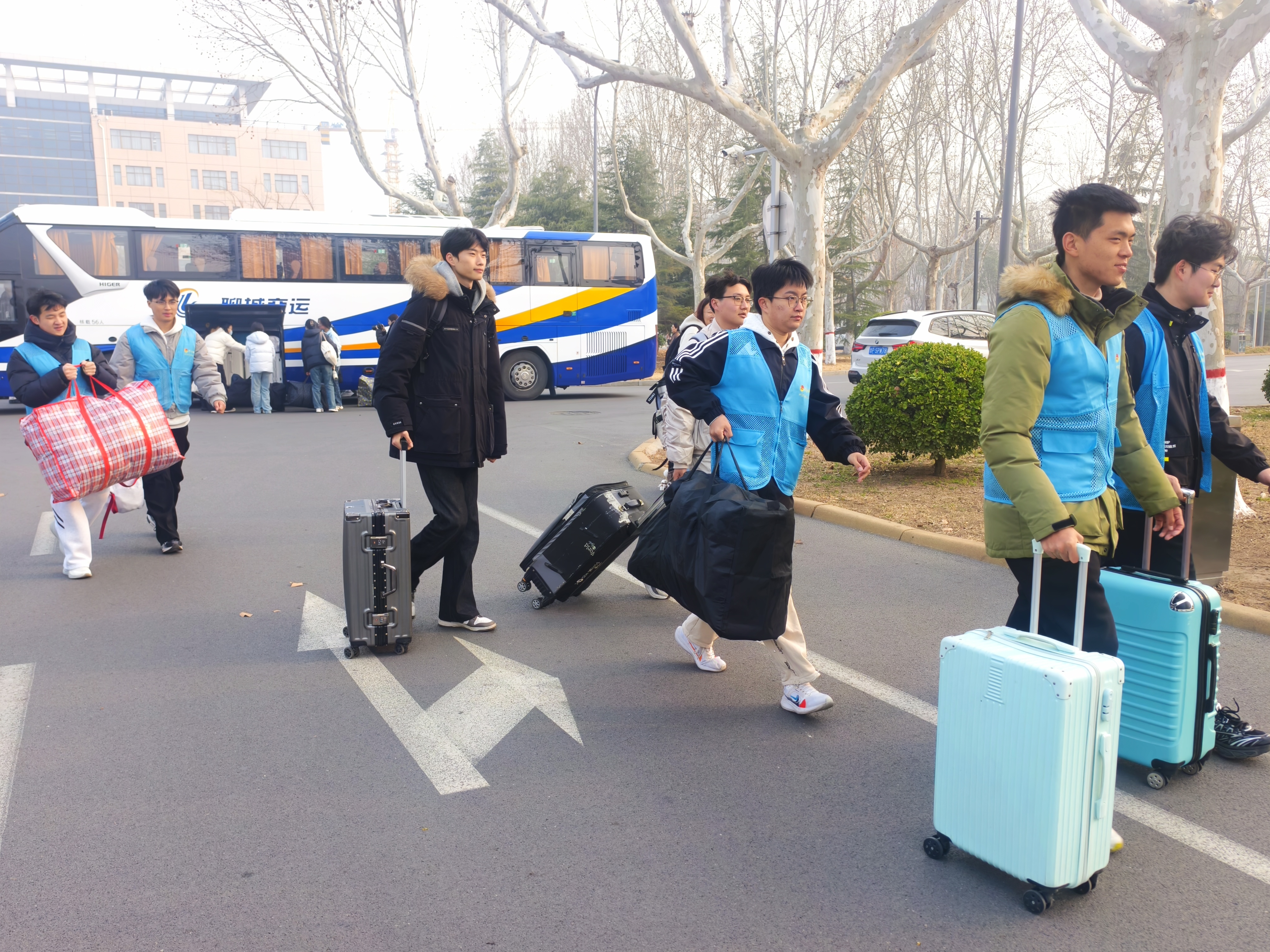 清晨8时,尽管天气略带凉意,但送别现场却暖意融融。各学院同学们早早集结完毕,整装待发。他们精神抖擞,行李上贴着统一标识,眼中闪烁着对即将开启的教师生涯的期待与坚定。各学院领导亲临现场为同学们送行,与即将出征的实习支教学子亲切交谈,叮嘱大家注意安全、珍惜实习机会,鼓励他们将所学理论知识转化为教学实践能力,展现聊大学子的良好风貌,为聊城基础教育事业贡献青春力量。