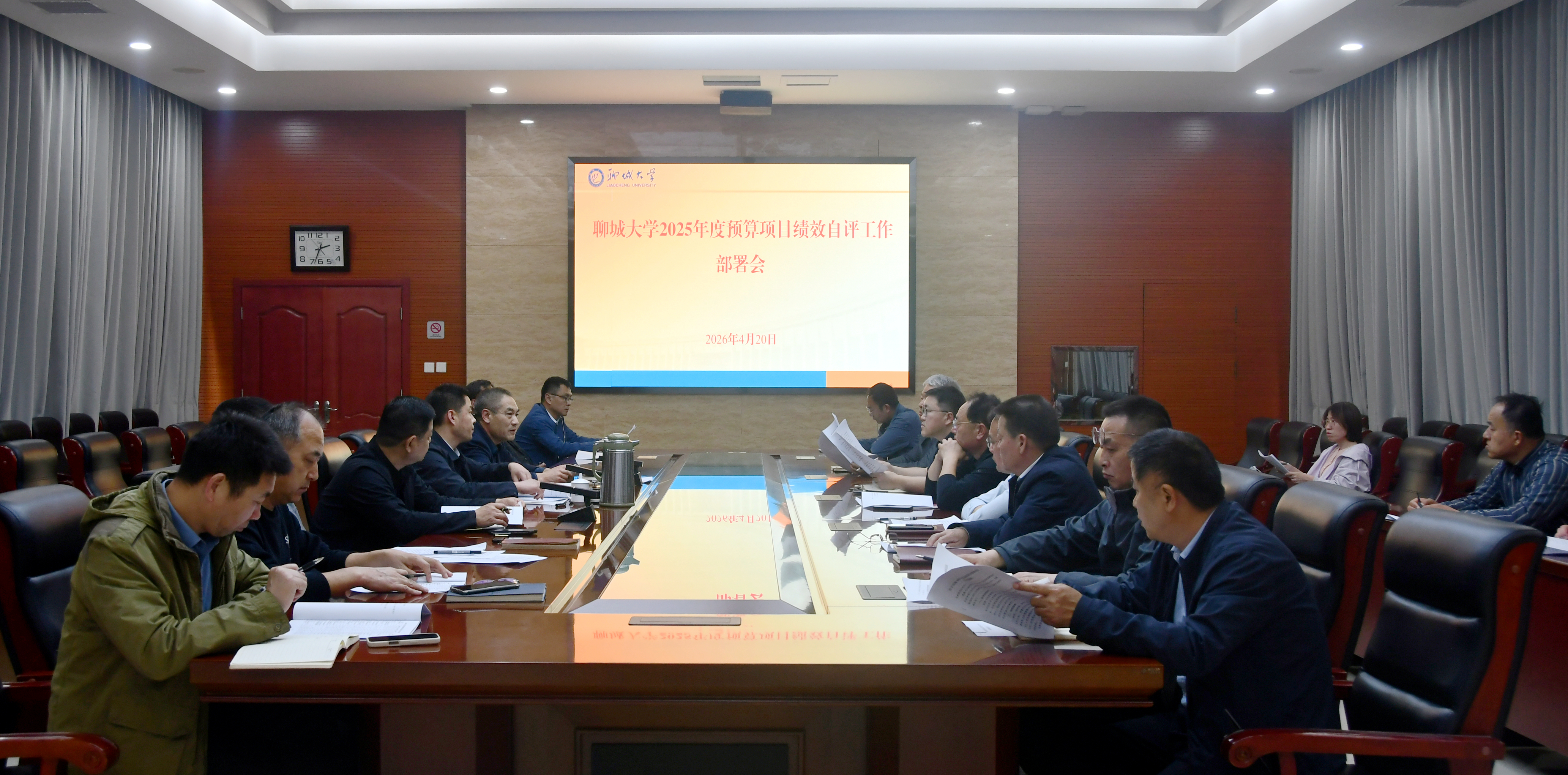 财务处处长陈长亮传达了《山东省财政厅关于开展2025年度省级预算绩效自评和部门评价工作的通知》,对上级部门开展绩效自评政策要求进行了解读。相关同志就我校2025年度预算项目绩效自评填报工作进行了具体安排。