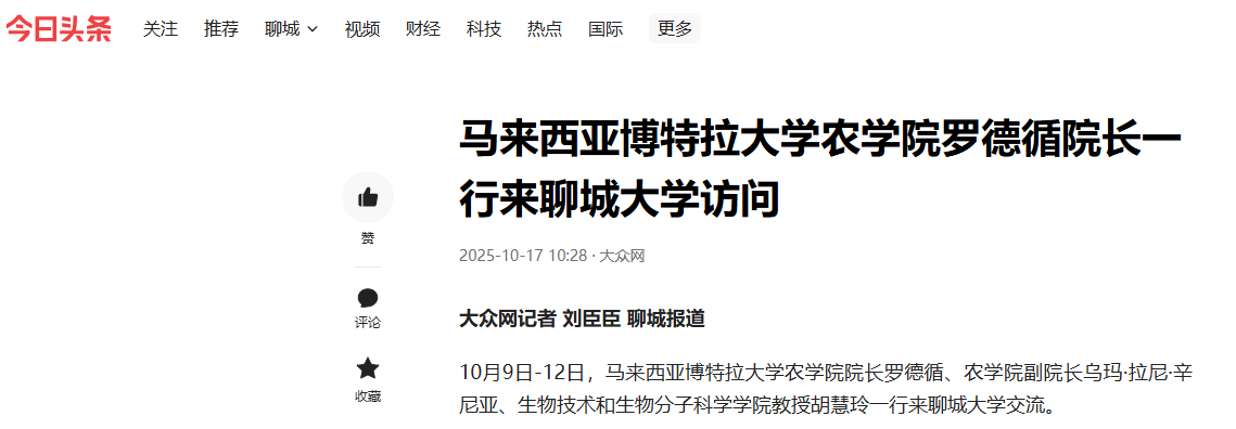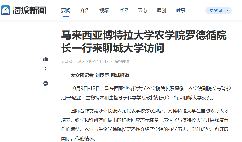 【海报新闻】【今日头条】发布马来西亚博特拉大学农学院罗德循院长一行来聊城大学访问