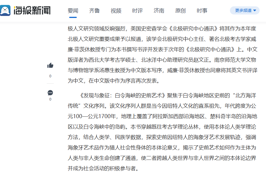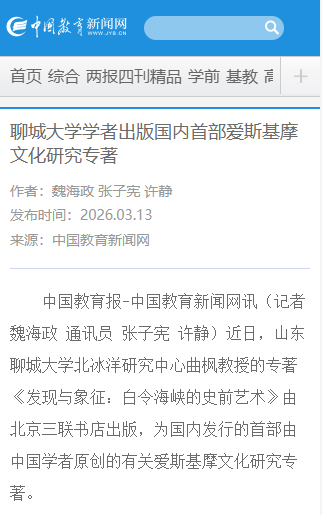 【中国教育新闻网】【海报新闻】【大众新闻】报道聊城大学学者出版国内首部爱斯基摩文化研究专著