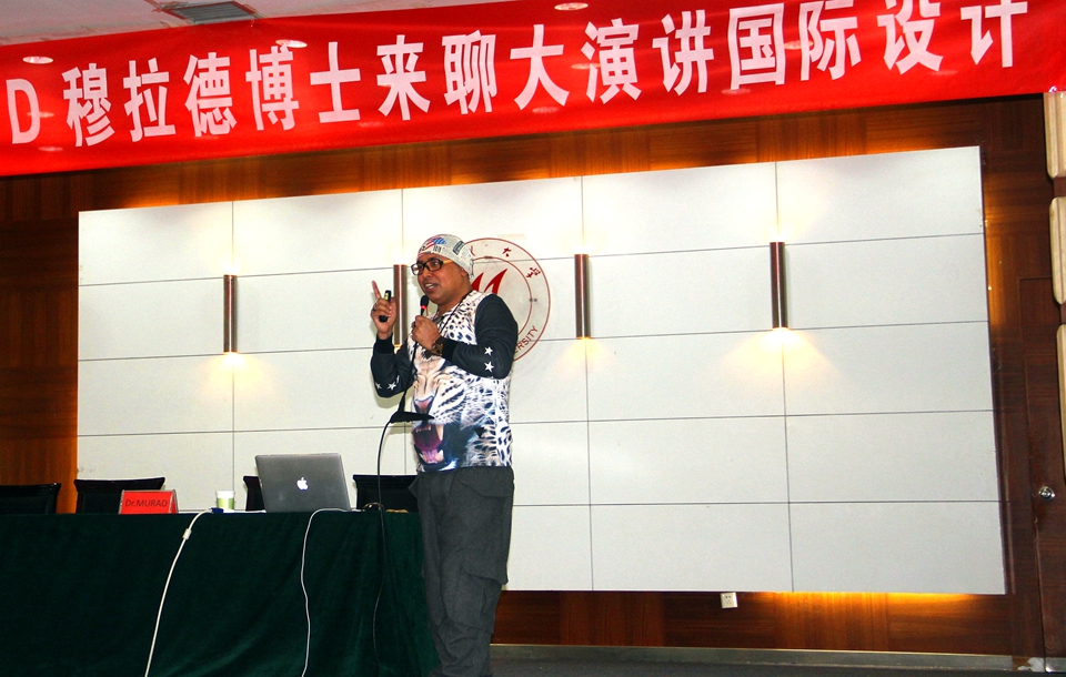 首先,穆拉德博士以艺术设计的四个核心为前提,重点阐释了家居设计流行元素、新古典主义元素和时尚元素等艺术设计类型,用北京天安门、华西村大楼、奥运比赛服等自身创意设计之路为主线,教导学生用智慧做事,用视觉营造空间。他认为,设计是一门综合学科,应注重整体空间意识和内涵底蕴,要学会读书、学会走路,用知识和阅历充实自己的人生,才能达到一个崭新的高度。穆拉德博士的讲座内容丰富、视野开阔,使在场师生对艺术设计的核心和要义有了更进一步的认识和把握。