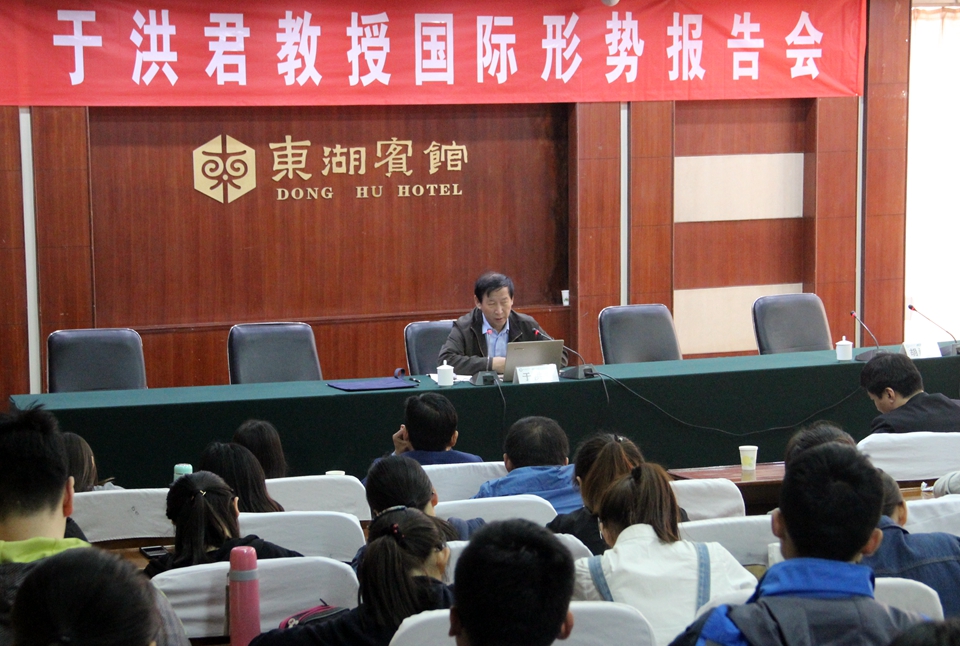4月25日上午,中共中央对外联络部原副部长于洪君教授做客我校,做了题为“朝鲜半岛问题的由来与走势”的国际形势报告。校党委常委、副校长胡海泉,历史文化与旅游学院、政治与公共管理学院等相关学院师生参加报告会。